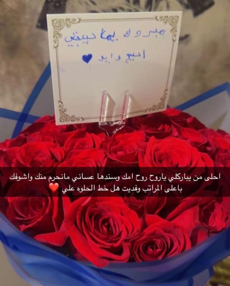 بعد إنفصالها عن زوجها، وزواجها مُجدّداً، هنأ إبن الفنانة الكويتية مرام البلوشي والدته، وأرسل لها باقة من الورد الأحمر.