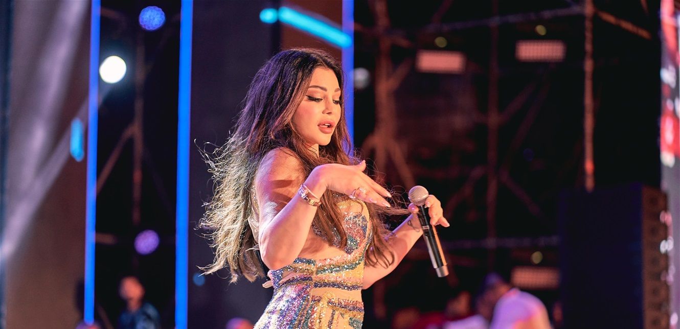 وتألقت هيفا بفستان باللون البوردو وغنت ورقصت مع الجمهور حيث قدمت أشهر أغانيها.