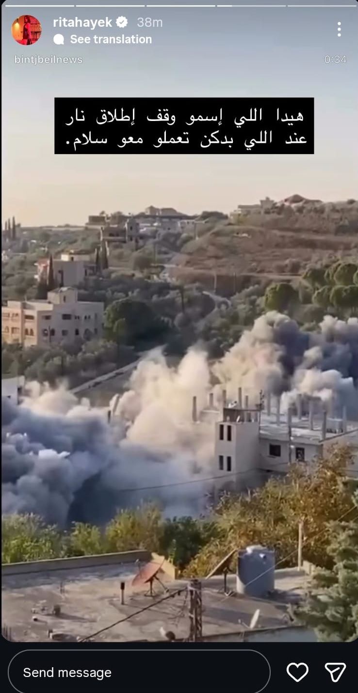 علّقت الممثلة ريتا حايك، على الغارات الإسرائيليّة التي استهدفت بلدات جنوبية، بعد ظهر اليوم.