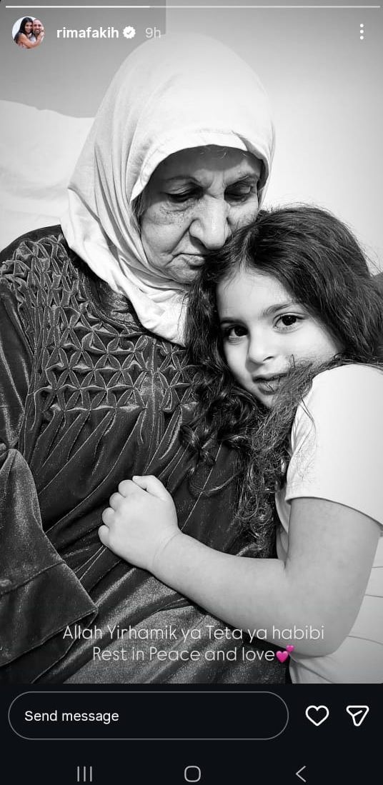 ونشرت فقيه صورة لجدّتها عبر خاصية "ستوري" عبر حسابها على "انستغرام"، ونعتها قائلة: "الله يرحمك يا تيتا يا حبيبي".