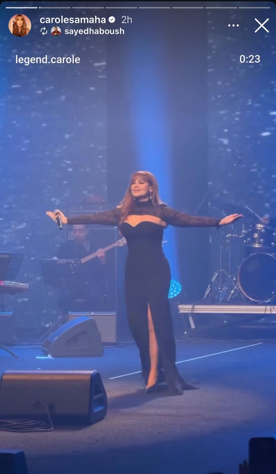 كارول سماحة تلفت الأنظار على المسرح بفستان أسود