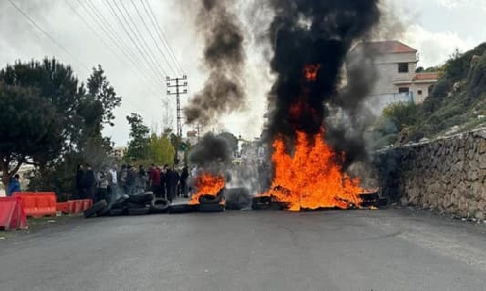 قطع محتجّون طريق عام مشغرة عند المدخل الشمالي للبلدة بالإطارات المشتعلة، احتجاجاً على استمرار التقنين القاسي للتيار الكهربائي، والذي تعاني منه البلدات منذ أسابيع.