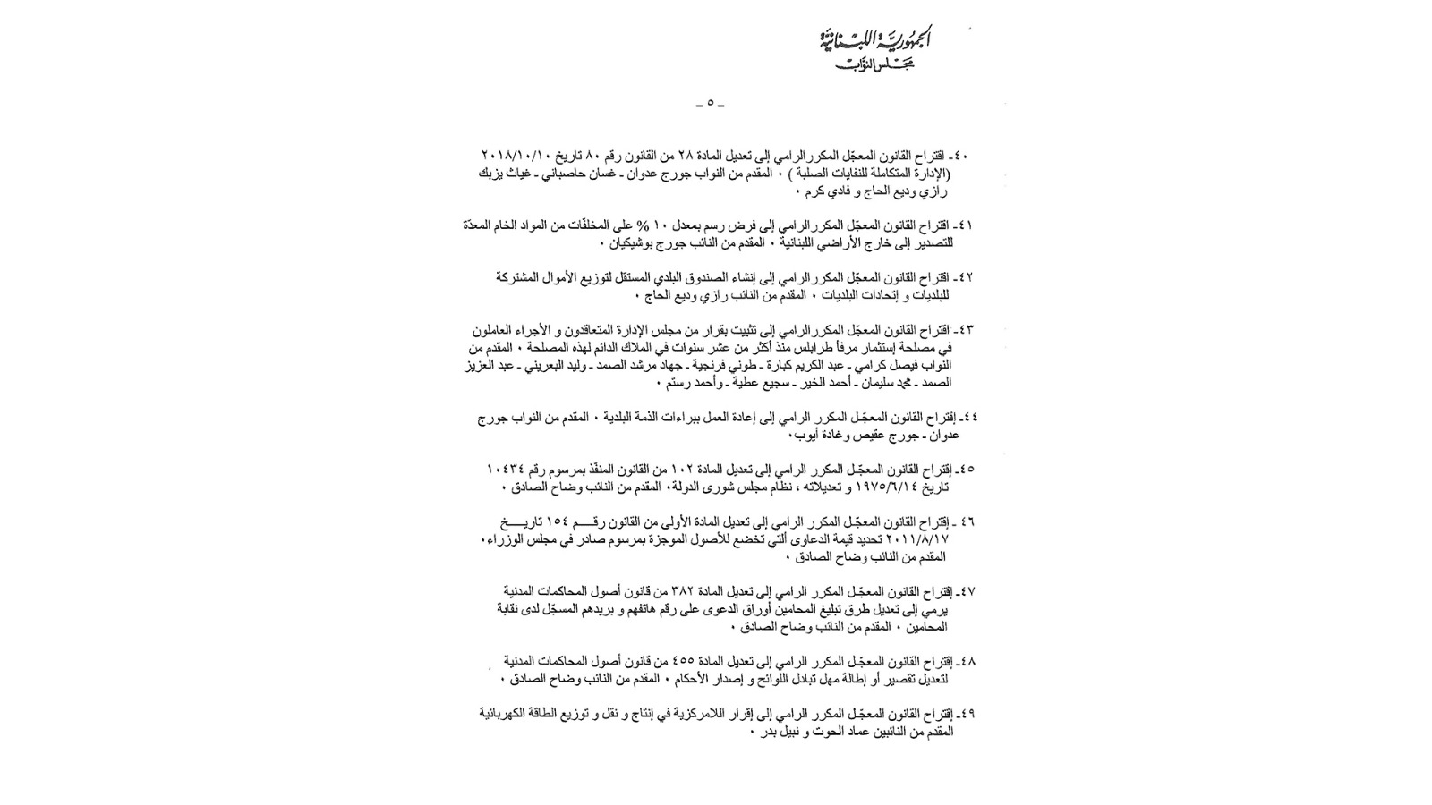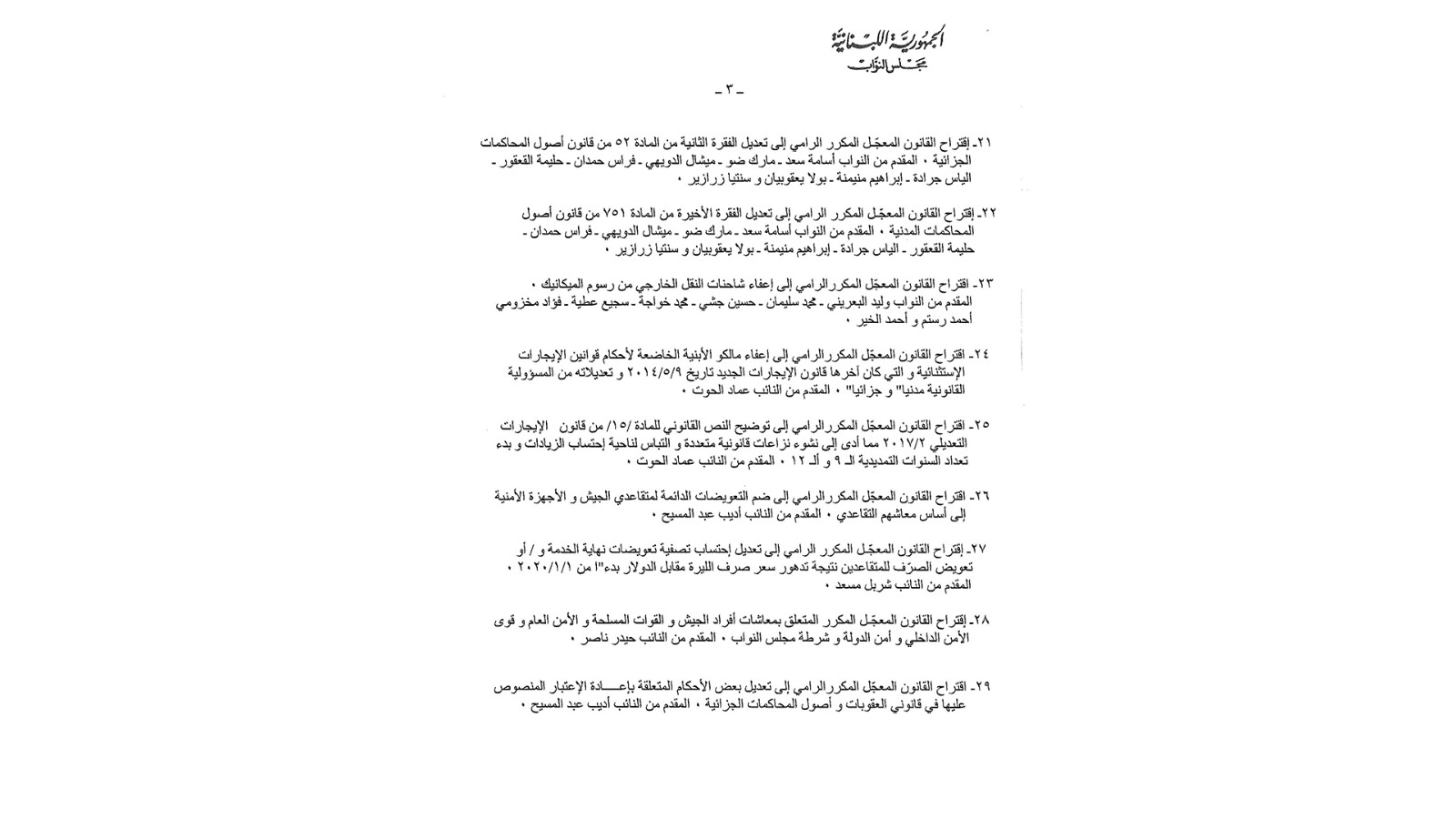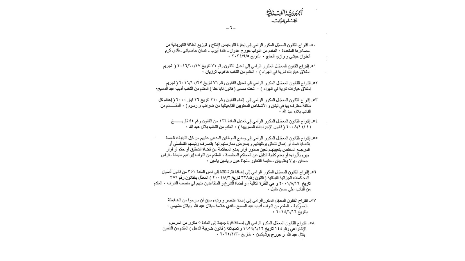 عمّم مجلس النواب جدول أعمال الجلسة الترشيعية، التي دعا إليها رئيس مجلس النواب نبيه بري، عند الحادية عشرة من قبل وبعد ظهر يوم الخميس الواقع فيه 15 أيار 2025.