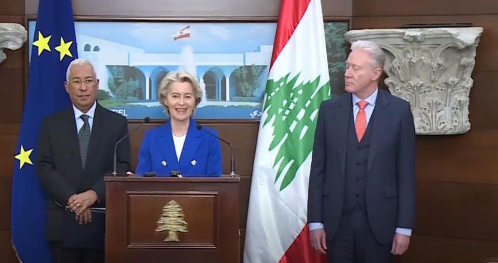 ورحّبت فون دير لايين بالإجراءات التي اتخذها لبنان لإصلاح عدد من القطاعات، ولا سيما القطاع المصرفي، مشددة في الوقت نفسه على ضرورة احترام سيادة لبنان ونزع سلاح حزب الله بشكل كامل.