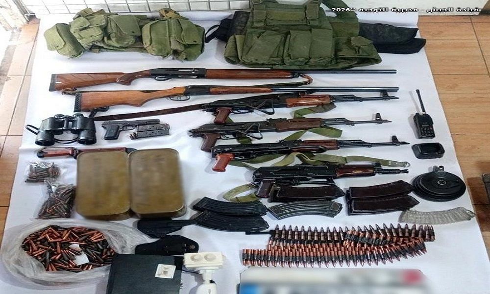 دهمت وحدة من الجيش منازل مطلوبين في منطقة حورتعلا – بعلبك وأوقفت 5 مواطنين لإطلاقهم النار، وضبطت في حوزتهم كمية من الأسلحة والذخائر الحربية، بالإضافة إلى أعتدة عسكرية.