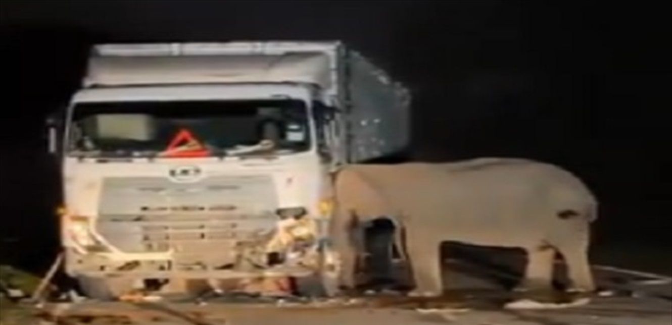 نفق فيل صغير بعدما صدمته شاحنة على طريق سريع شمالي ماليزيا، في الساعات الأولى من صباح اليوم الأحد، مما تسبب في إصابة أمه بحالة هياج دفعها لإتلاف للجزء الأمامي من المركبة التي صدمت صغيرها.
