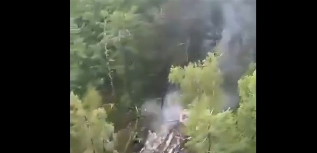 وتظهر المشاهد بوضوح هيكل الطائرة المحطم وسط منطقة غابات كثيفة.