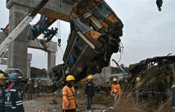 وكانت الرافعة تعمل في مشروع خط سكة حديد فائق السرعة عندما انهارت واصطدمت بالقطار المار، مما أدى إلى خروجه عن مساره واشتعال النيران فيه بسرعة. (سكاي نيوز عربية)