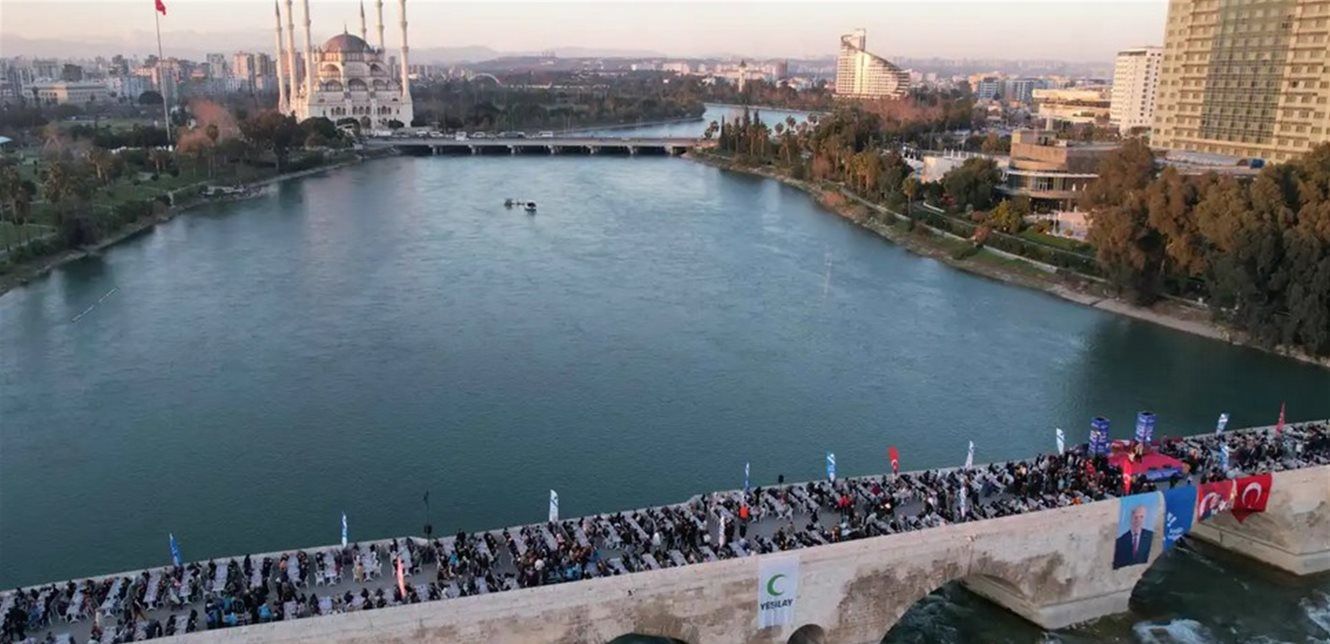ونظمت بلدية فرعية في محافظة أضنة، في جنوب تركيا، الإفطار الجماعي فوق جسر "تاشكوبرو" أو الجسر الحجري الذي يصل ضفتي نهر سيحان الذي يصب بدوره في البحر المتوسط.