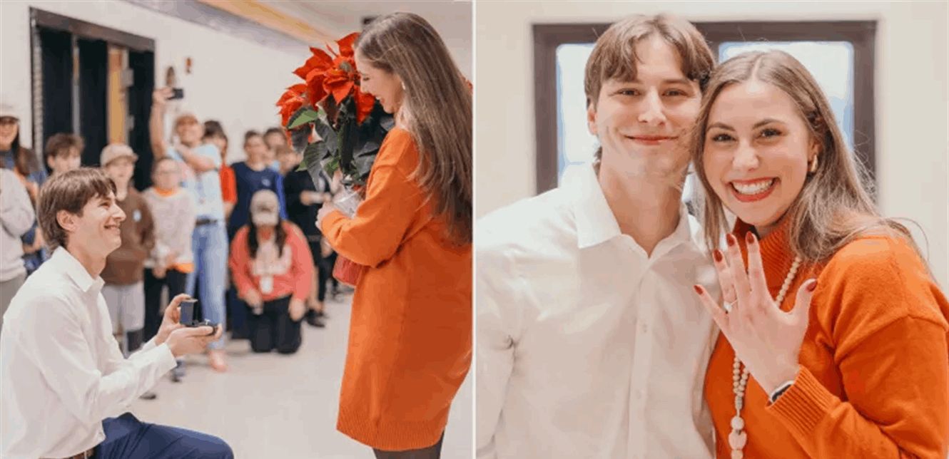 لكن بيليغرينو، البالغ 30 عاماً، فاجأها في نهاية الدوام حين سارت في الممر لتجد طلابها الـ28 مصطفين وهم يحملون حروفاً كوّنت عبارة "هل تقبلين الزواج بي؟"، فيما كان هو بانتظارها جاثياً على ركبة واحدة.