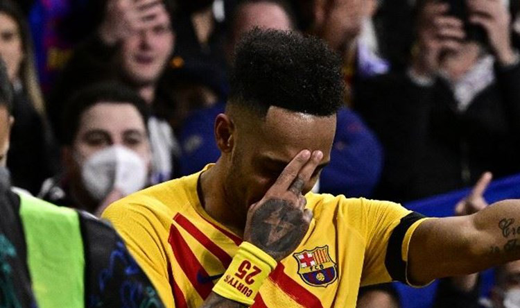 ونشر المهاجم الغابوني عبر حسابه في “تويتر” صورة احتفاله بهز الشباك في الكلاسيكو، وكتب عليها “تحية من اللاعب المنتهي”.