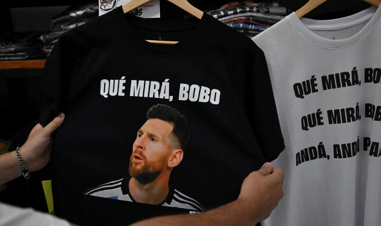 يبدو أن تهكم النجم الأرجنتيني، ليونيل ميسي، على مهاجم هولندا، فاوت فيخهورست، بعد المواجهة المشحونة بين المنتخبين في ربع نهائي مونديال قطر 2022، أثار إعجاب أبناء بلده حتى بات في الأسواق مطبوعا على الأكواب والقمصان وغيرها من المنتجات.