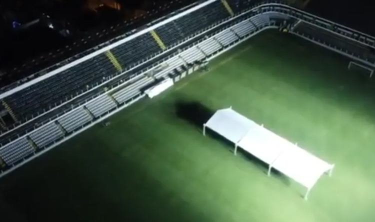 ومن ضمن الإجراءات التي اتخذها النادي، تم تحضير نعشاً ذهبياً نقشت عليه صورة بيليه وهو يحمل كأس العالم، كما تم تجهيز ملعب أوربانو كالديرا، بخيمة كبيرة استعداداً لمراسم العزاء التي سيتم الإعلان عنها فور وفاة بيليه.