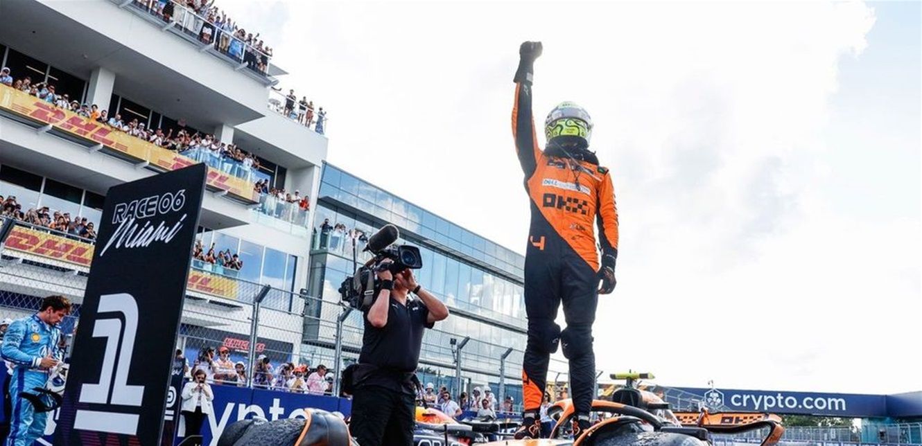 تعهد البريطاني لاندو نوريس، سائق فريق «ماكلارين»، بمواصلة انتصاراته في سباق «فورمولا- 1» في ميامي عاماً بعد الآخر، وذلك من خلال الفوز مجدداً في الموسم الحالي واستمرار سعيه للتحدي في البطولة.