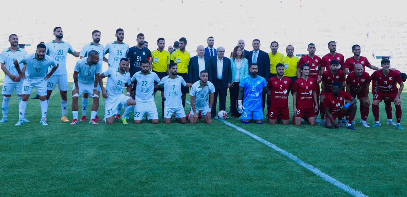 بعدها توجه الرئيس سلام، ترافقه الوزيرة بايراقداريان، إلى الملعب الأخضر، لإعلان إنطلاق مباراة الديربي بين "الأنصار" و"النجمة"، حيث التقطت لهما الصور التذكارية مع لاعبي الفريقين وطاقم التحكيم، وترافق ذلك مع إطلاق المفرقعات والألعاب النارية.