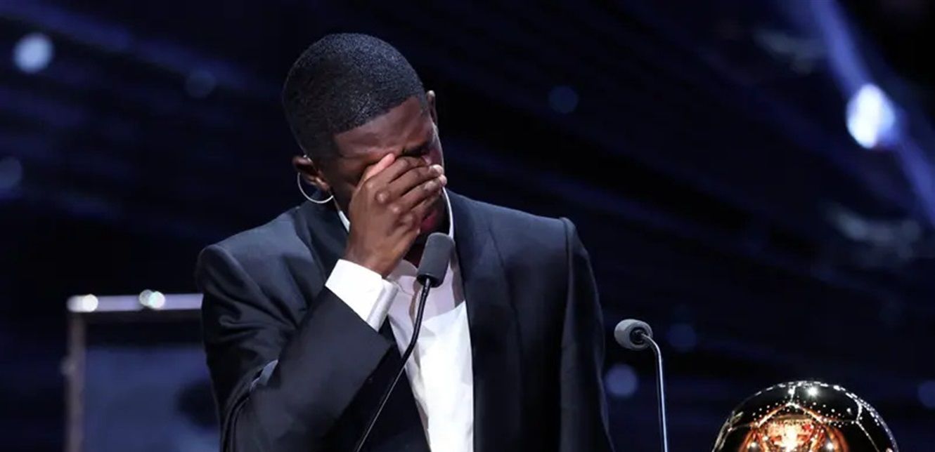وفاز عثمان ديمبلي بجائزة الكرة الذهبية لأفضل لاعب في العالم، المقدمة من مجلة "فرانس فوتبول"، يوم الاثنين، متفوقاً على الإسباني لامين يامال نجم برشلونة، إذ بكى اللاعب الفرنسي بشدة أثناء تسلمه الجائزة ووجه الشكر لوالدته التي صعدت إلى المنصة لمرافقته.