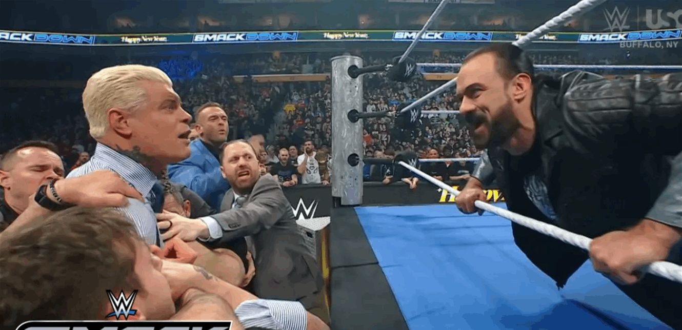 تفاقمت المواجهة بين درو ماكنتاير وبطل "WWE" كودي رودز خلال عرض "سماكداون" الذي أُقيم في "2 كانون الثاني" من مركز "كي بانك" في "بوفالو" بولاية "نيويورك"، بعدما تحولت الرسائل المتبادلة إلى استفزاز شخصي مباشر.