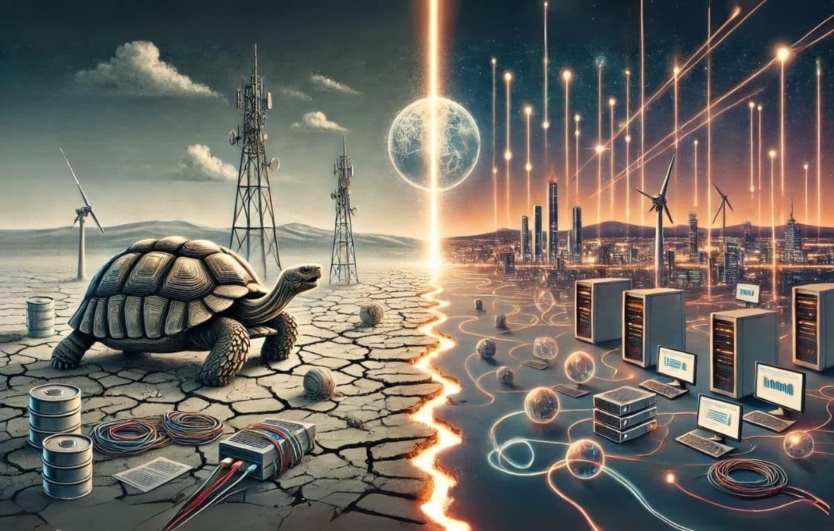 يعتمد غالبية السوريين حتى الآن على شبكة (ADSL) القديمة، التي تستخدم كوابل نحاسية قديمة يزيد عمرها على 20 عامًا، ويؤثر هذا الاعتماد على بنية تحتية متهالكة بنحو مباشر في سرعة الاتصال وجودته، إلى درجة دفعت الكثيرين إلى وصف تلك الخدمة بـ”إنترنت السلحفاة”، نظرًا إلى البطء الشديد في سرعتها.