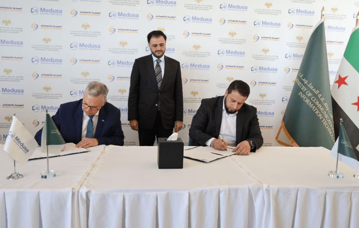 وقد جاءت مراسم التوقيع بحضور وزير الاتصالات والتقانة السوري عبد السلام هيكل، وممثل شركة ميدوسا الإسبانية السيد نورمان ألبي، إلى جانب محافظ اللاذقية محمد أحمد عثمان وعدد من المسؤولين والخبراء في قطاع الاتصالات، في مشهد يؤكد عودة سوريَة إلى واجهة مشروعات البنية التحتية الرقمية الإقليمية.