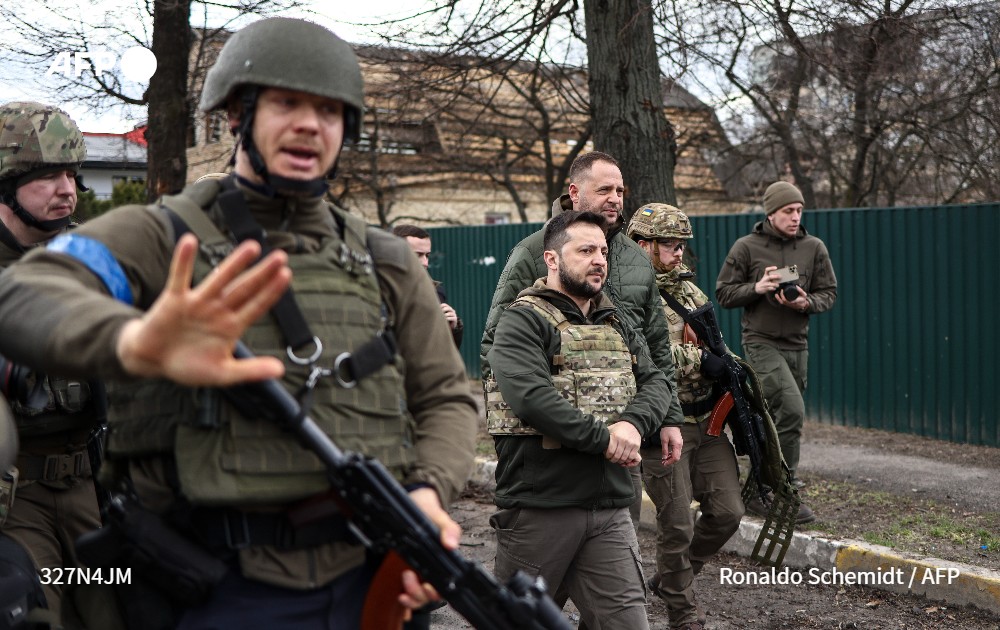 وتفقد الرئيس الأوكراني قرية بوتشا بعد المزاعم بانتهاكات ارتكبتها القوات الروسية بالمدينة.