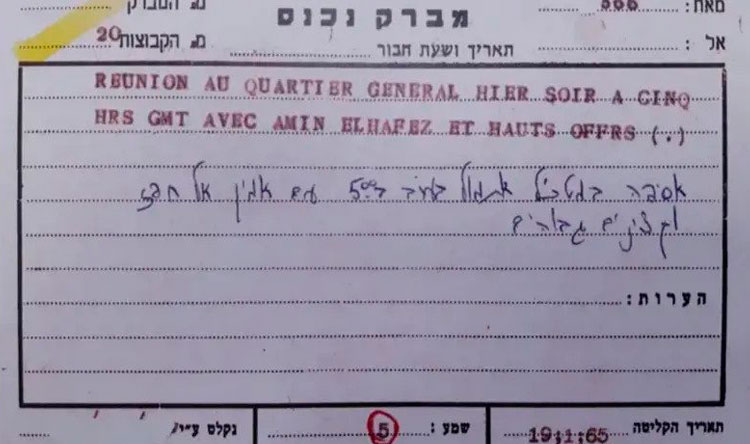 ونشرت البرقية المكتوبة على آلة كاتبة باللغة الفرنسية، وسائل إعلام إسرائيلية عدة بمواقعها، وفيها كتب كوهين، “اجتماع بمقر أركان الجيش السوري الساعة الخامسة مع أمين الحافظ (رئيس الجمهورية) وكبار ضباط الجيش”، وتم عرض نسخة منها في حفل افتتاح متحف عن كوهين اليوم، بينما “سيتم الاحتفاظ بنسختها الأصلية في أرشيف الدولة”، وفقا لما ذكر رئيس الموساد ديدي برنيع.