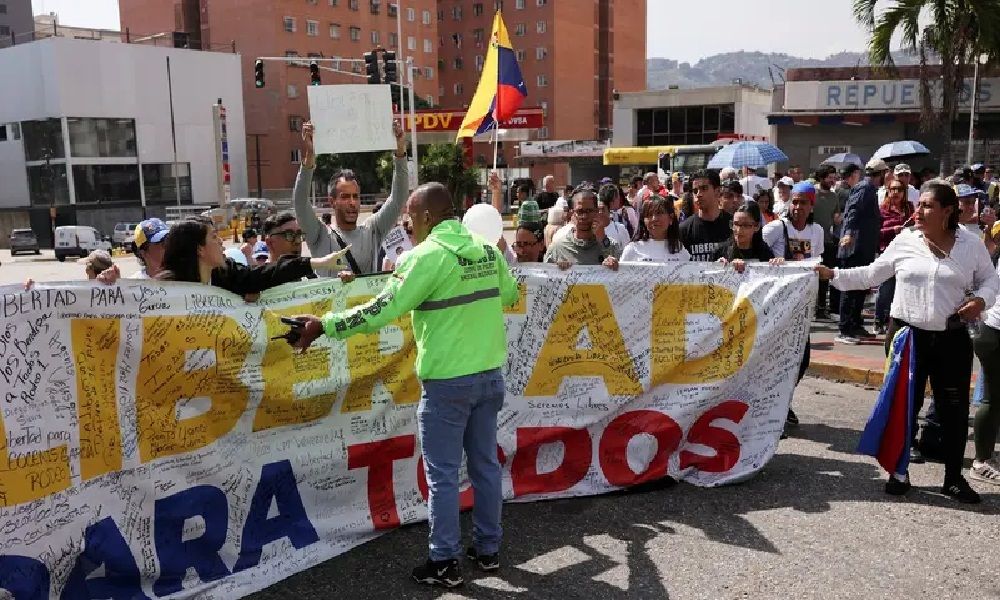 تظاهر العشرات من أقارب وأصدقاء قادة المعارضة الفنزويلية المسجونين، امس السبت، أمام سجن هيليكويد في كاراكاس، مطالبين بالإفراج الفوري عن ذويهم.