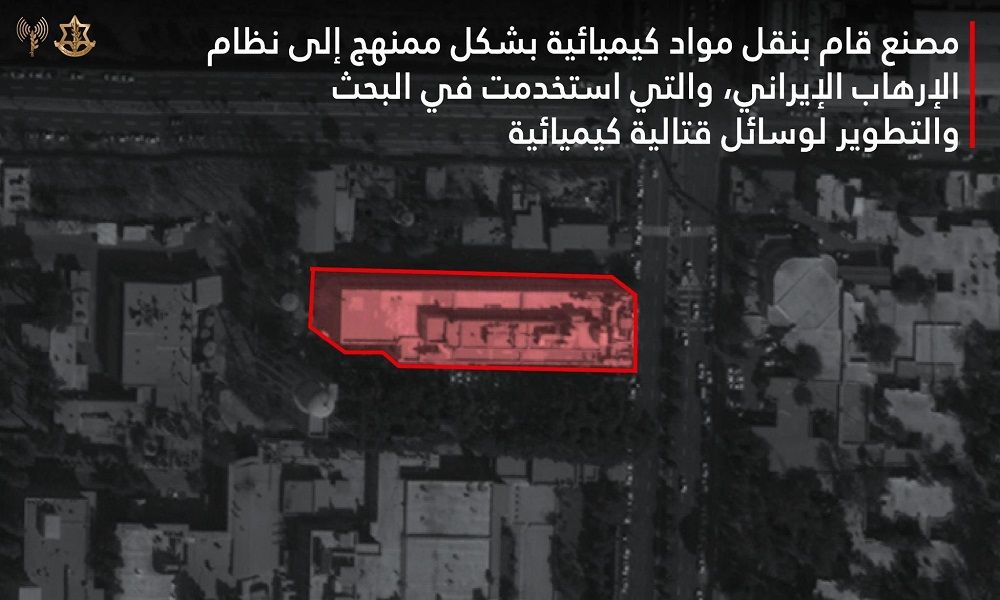 كما أشار إلى أن “المصنع الذي هاجمناه كان ينقل مواد لتطوير أسلحة كيميائية للنظام الإيراني”.