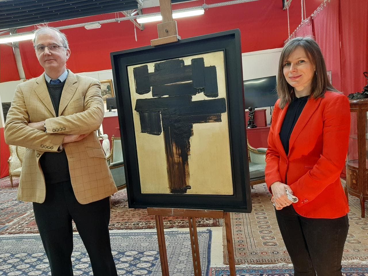 وقدم بيار سولاج هذه اللوحة لصديقه" ليوبولد سيدار سنغور" بعد وقت قصير من إنجازها، كما أوضحت الدار. وتحمّل اللوحة عنوان "لوحة 81 60x سم، 3 ديسمبر 1956".