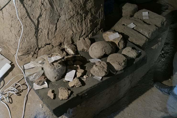 كما تم العثور على دفنتين غير مألوفتين لبقرة أو ثور داخل إحدى الغرف، وما زال البحث جاريًا؛ لتحديد طبيعة والغرض من هذه الدفنات.