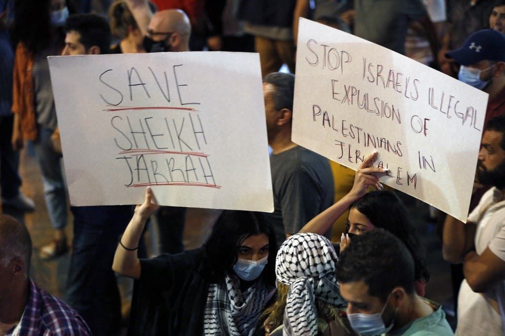 متظاهرون فلسطينيون في حي الشيخ جراح (أرشيفية من فرانس برس)