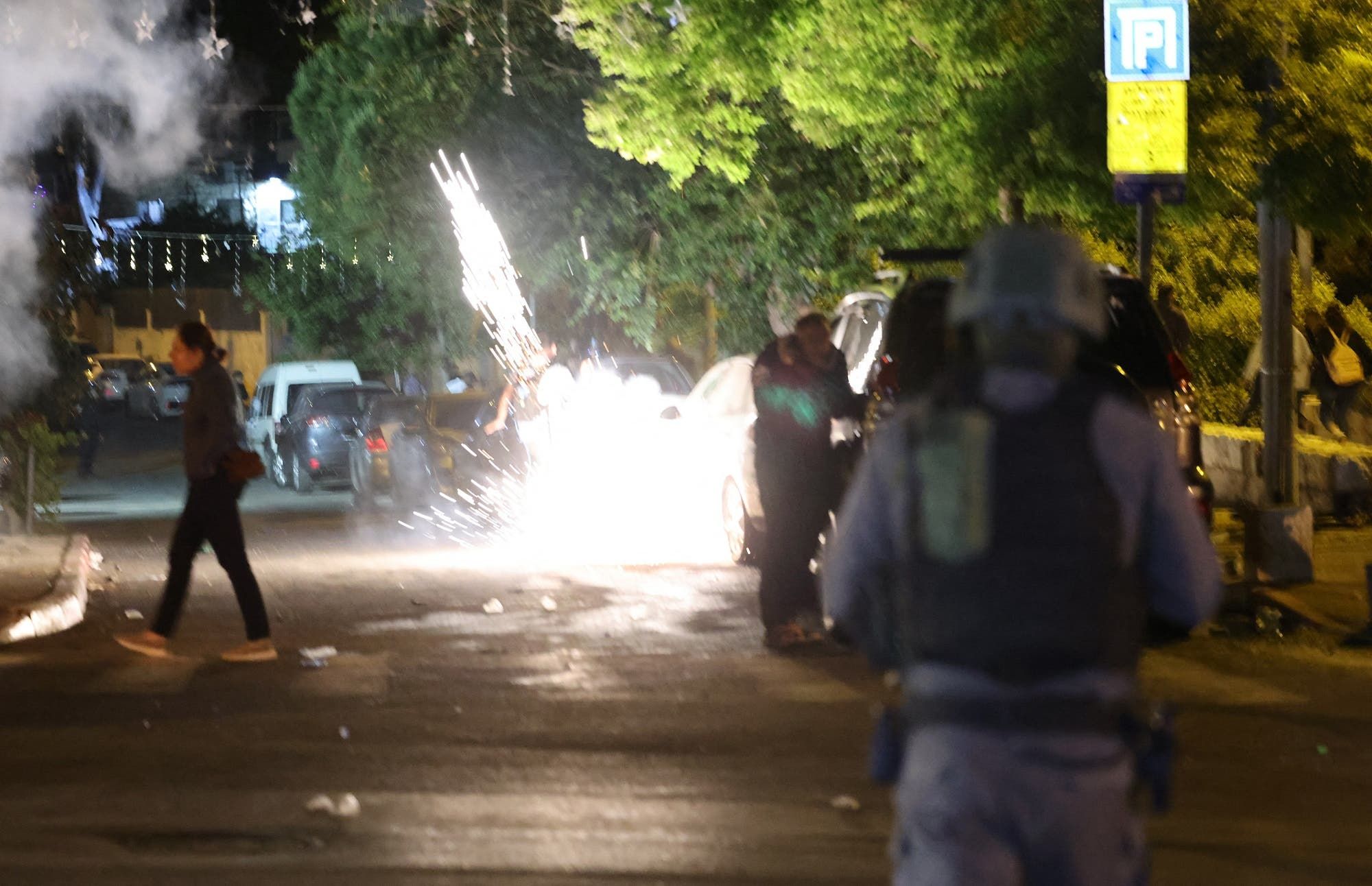 اشتباكات بين الشرطة الإسرائيلية والمتظاهرين الفلسطينيين في حي الشيخ جراح يوم 7 مايو (فرانس برس)