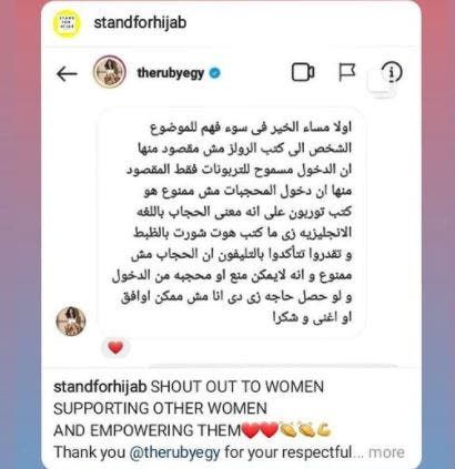 وشددت روبي على أنها لن تسمح بمنع دخول أي محجبة، ولو حدث هذا الأمر، فهي لن توافق ولن تغني من الأساس.