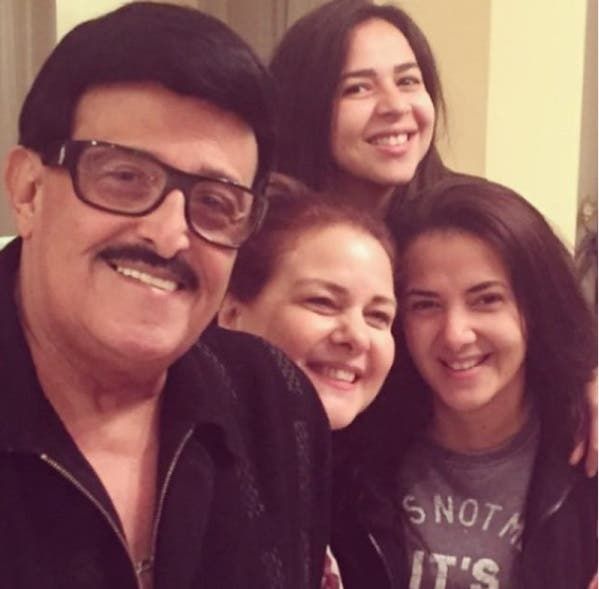 دنيا سمير غانم تتوسط والديها دلال عبدالعزيز وسمير غانم وشقيقتها إيمي