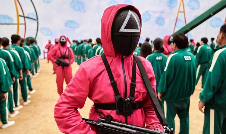 وفي المسلسل، يرتدي جميع اللاعبين ملابس رياضية خضراء أشبه بأزياء السجناء، فيما يرتدي حراسهم وجلادوهم سترة باللون الفوشيا ويضعون ملابس سوداء تظهر عليها مثلث أو دائرة أو مربع تبعا للرتبة.