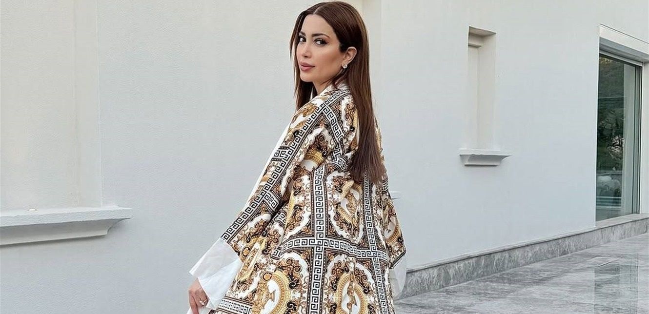 وفي أجواء رمضانية ممتعة، أطلت الممثلة السورية بعباءة مفتوحة بتصميم أنيق بأساس أبيض وعليها زخرفات مميزة بتدرجات اللون البني مع شعار دار Gucci، وارتدته فوق ملابس كاجوال عبارة عن توب بيضاء وبنطلون جينز أسود. وأرفقت الصور بتعليق كتبت فيه: "أنا والحب وأجواء رمضان الساحرة في النيل".