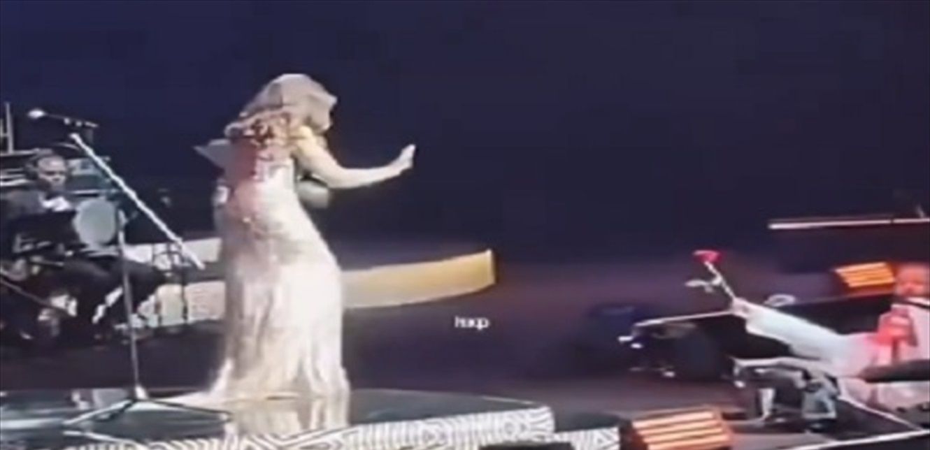 بسبب وردة... شاهدوا بالفيديو ما جرى بين فنانة شهيرة وأحد معجبيها خلال حفلٍ!