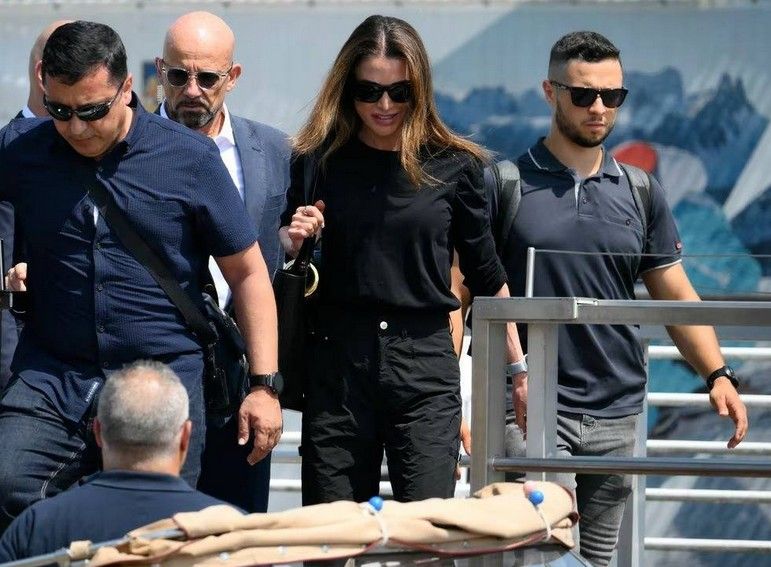 وشوهدت الملكة الأردنية، البالغة من العمر 54 عامًا، بإطلالة كاجوال مرتدية قميصا وبنطالا باللون الأسود وهي تسير على الممشى الخشبي محاطةً برجال الأمن والموظفين قبل أن تصعد إلى قارب بمساعدة السائقين.