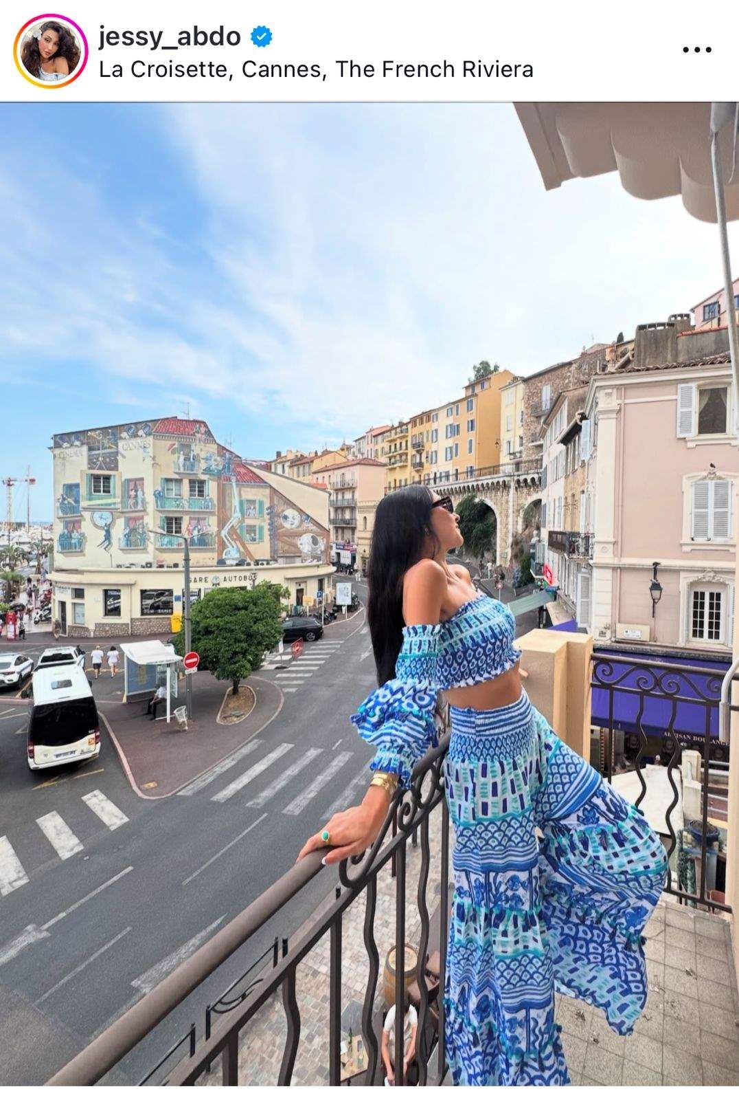 نشرت الممثلة جيسي عبدو صورة جديدة عبر حسابها على إنستغرام، ظهرت فيها بإطلالة صيفية أنيقة من شرفة تطل على شارع La Croisette الشهير في مدينة كان الفرنسية. وقد بدت جيسي في غاية السعادة والاسترخاء وهي تستمتع بجمال المدينة وأجوائها المميزة.