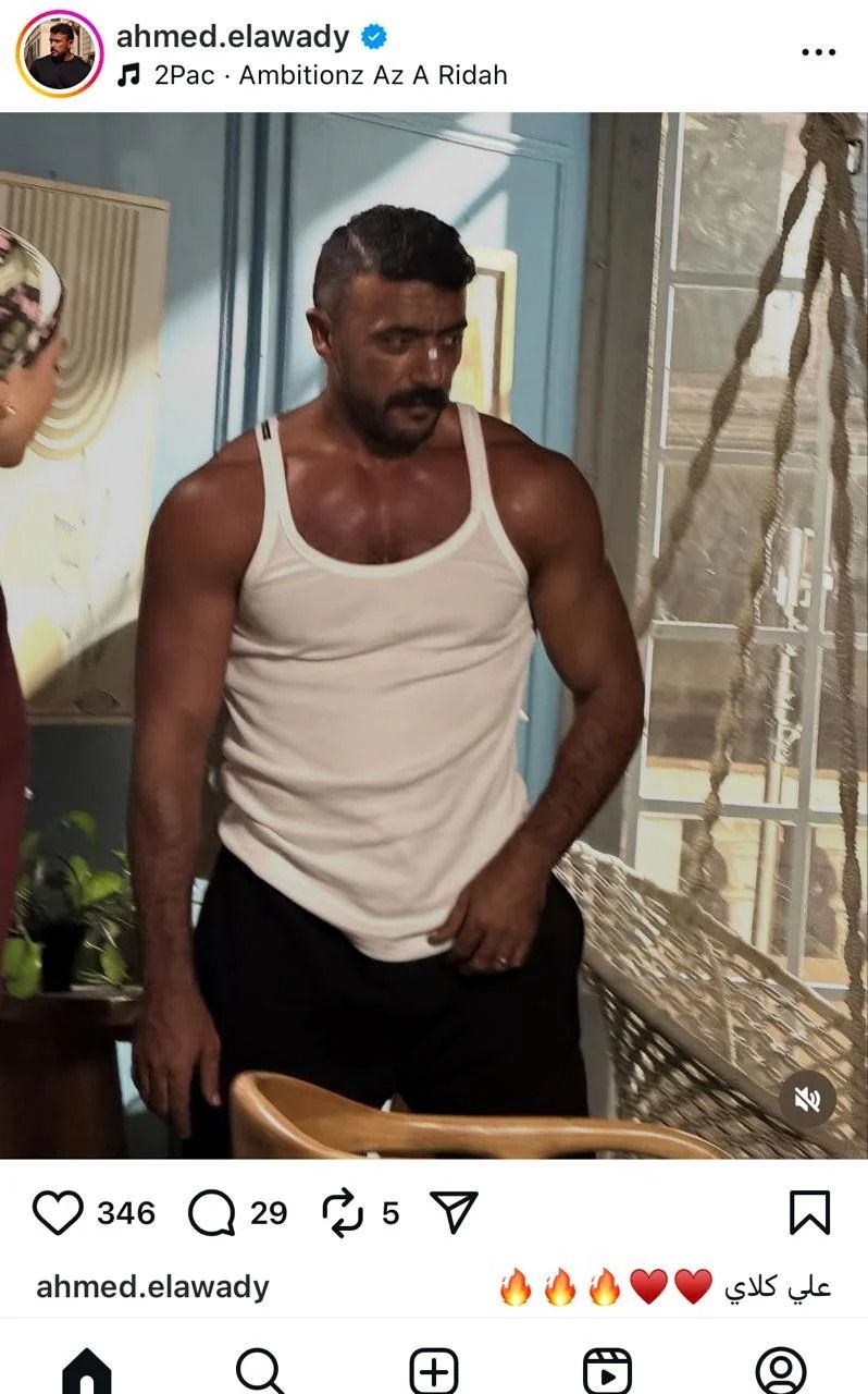 نشر الفنان أحمد العوضي صورة جديدة له من كواليس مسلسل "علي كلاي" استعدادًا لخوضه سباق دراما رمضان المقبل.