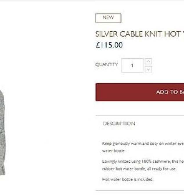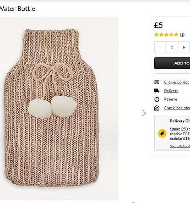 كما عرض الموقع -أيضا- أغطية زجاجات الماء الساخن مع الزجاجة المطاطية نفسها بسعر 115 جنيها إسترلينيا.