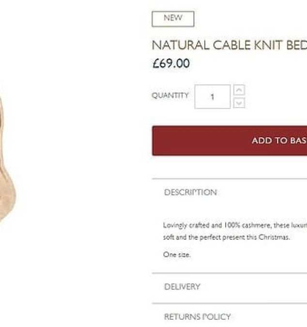 ويروج الموقع للجوارب على أنها مصنوعة بحرفية من صوف الكشمير بنسبة 100%، وأن هذه الجوارب الفاخرة ناعمة جدا ومثالية لوقت النوم، كما يمكن اعتبارها هدية مثالية، وهي متوافرة باللونين الفضي ولون صوف الكشمير الطبيعي.