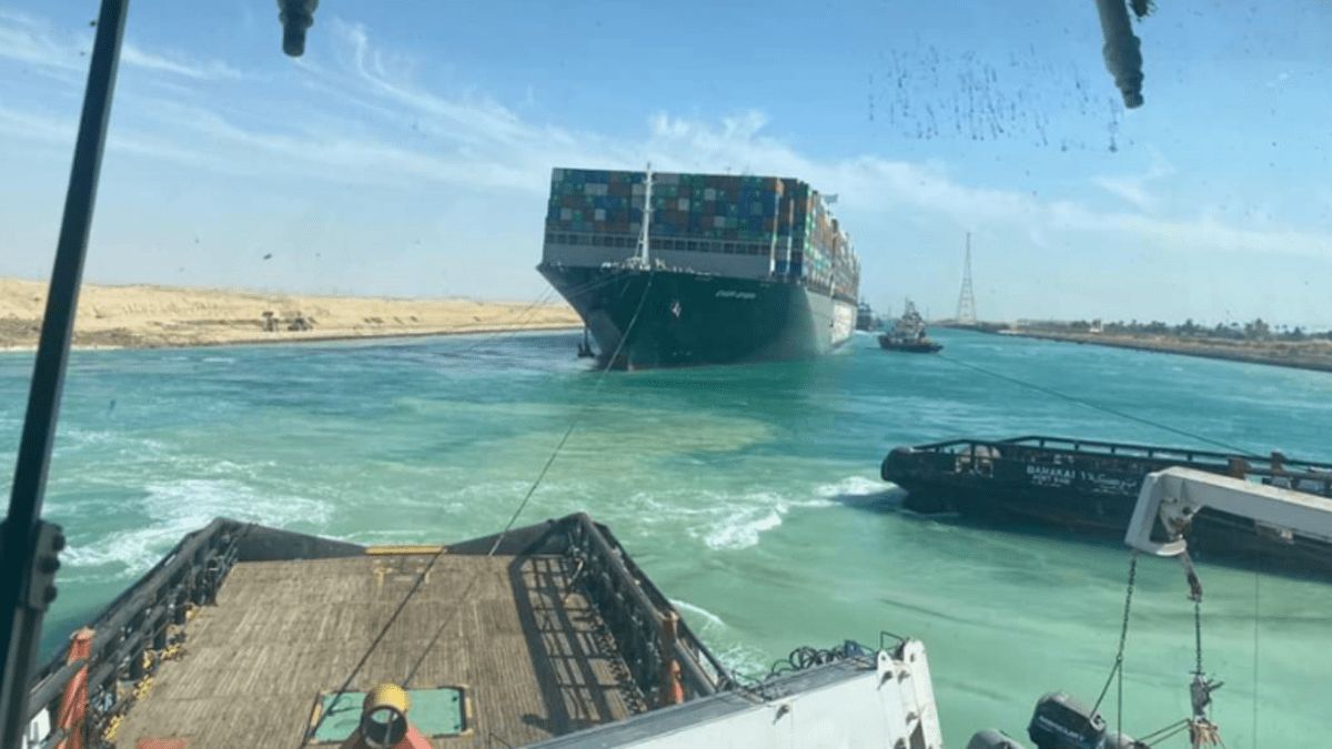 أصيبت سلاسل الإمداد العالمية بحالة من الارتباك عندما جنحت السفينة (إيفر جيفن) البالغ طولها 400 متر في القناة يوم 23 مارس آذار، لتستغرق فرق الإنقاذ المتخصصة نحو أسبوع لإعادة تعويمها.
