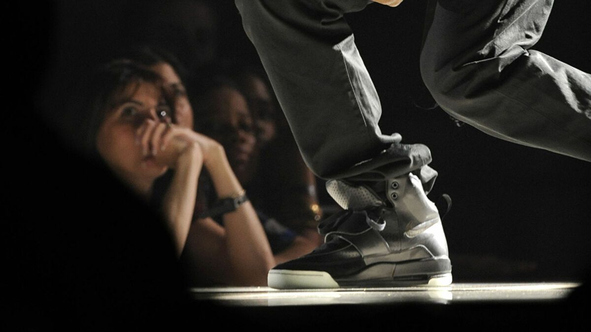 ويتميز الحذاء الرياضي بجلده الأسود ، مقاس 12 من نماذج “نايك إير ييزي 1” (1Nike Air Yeezy)، وبحزام في مقدمة القدم وأقفال دانتيل المميزة للعلامة التجارية باللون الوردي.