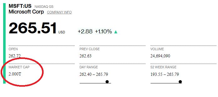 احتلت شركة “مايكروسوفت” الأمريكية مكانتها في التاريخ بعدما أصبحت ثاني شركة في العالم تتجاوز قيمتها السوقية مستوى 2 تريليون دولار.