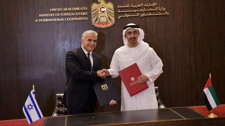 وقع وزير الخارجية الإسرائيلي، يائير لابيد، ونظيره الإماراتي، عبد الله بن زايد آل نهيان، على اتفاق للتعاون الاقتصادي والتجاري بين البلدين.