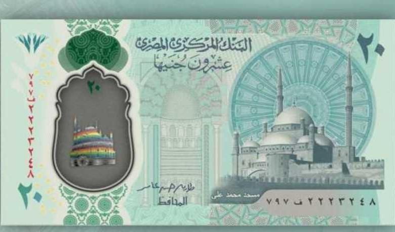 ويحمل تصميم العشرين جنيها صورة لمسجد محمد علي، وهو مؤسس الأسرة العلوية التي حكمت مصر منذ بدايات القرن التاسع عشر، وحتى سقوط الملكية في خمسينات القرن العشرين.