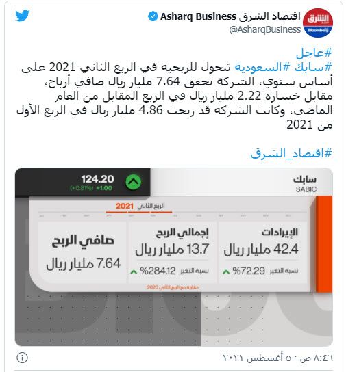 يذكر أن محللين ماليين كانوا يتوقعون أن تحقق شركة الصناعات الأساسية السعودية متوسط أرباح لا يتجاوز 5.7 مليار ريال (نحو 1.5 مليار دولار).