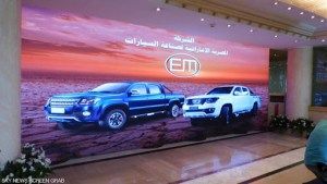 وعلى هامش توقيع الاتفاق كُشف النقاب عن أول نموذج للسيارة الجديدة من نوع “بيك أب”، وتُسمى EM، وتعمل بالغاز الطبيعي والبنزين.