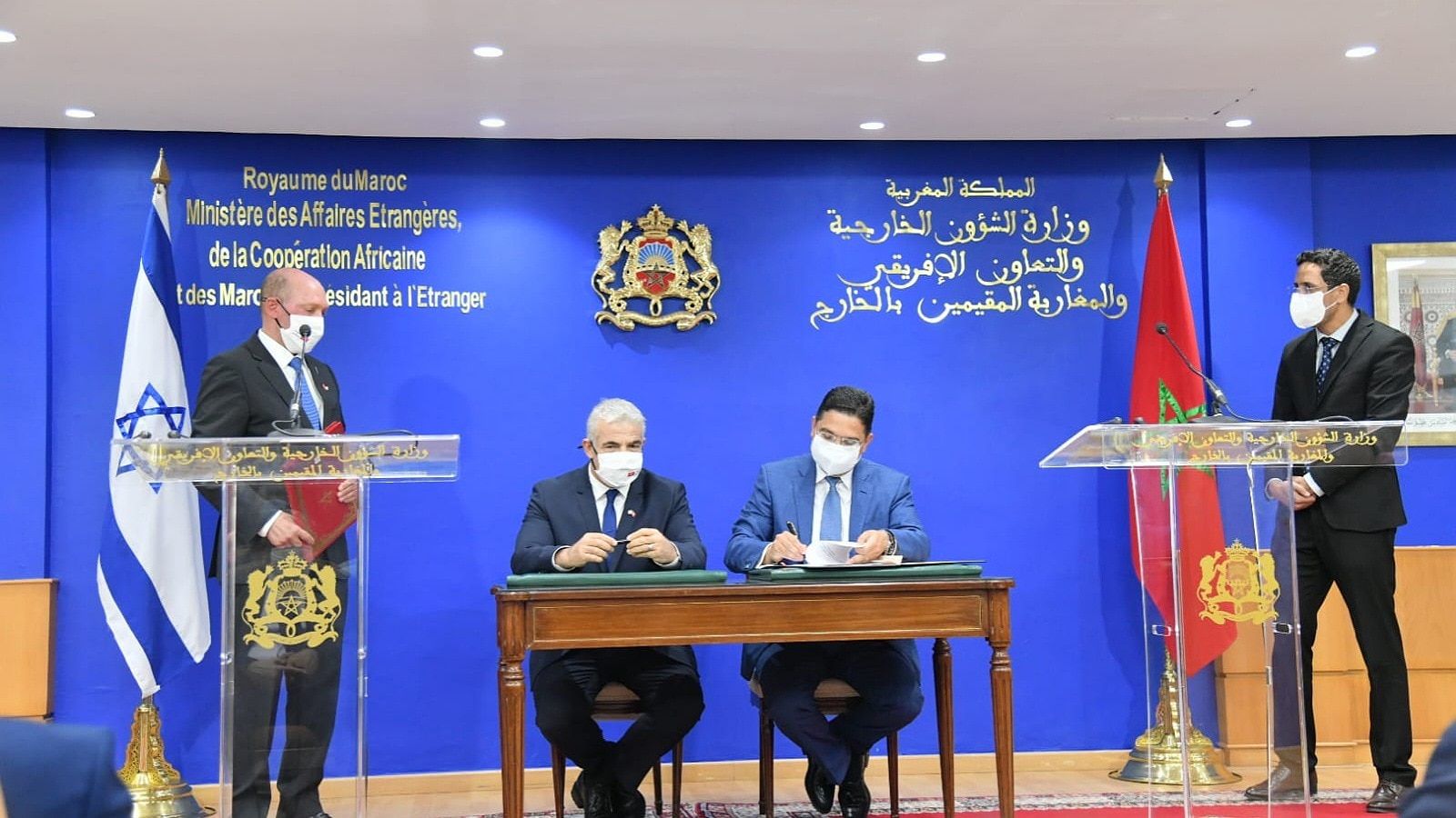 وقّع المغرب وإسرائيل، اليوم الأربعاء، في العاصمة المغربية الرباط، مذكرة تفاهم لإحداث آليات للتشاور السياسي، واتفاقيتين تتعلقان بالتعاون في مجال الثقافة والرياضة والشباب، والخدمات الجوية، وذلك على هامش الزيارة التي يجريها وزير الخارجية الإسرائيلي يائير لابيد للمملكة.