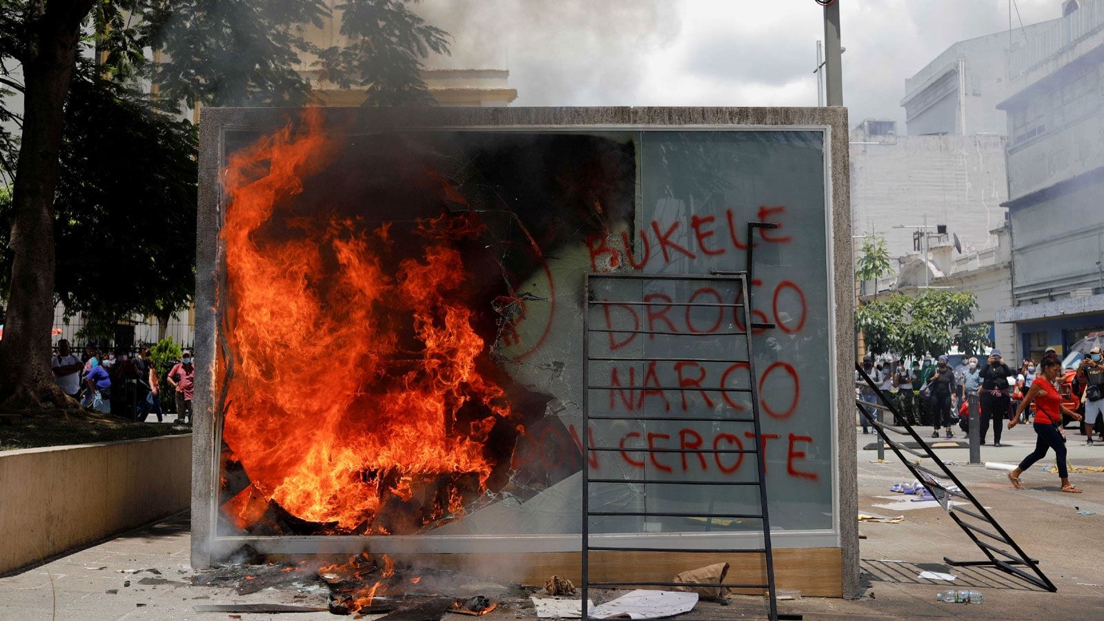 وقالت شبكة ”بي بي سي“ الإخبارية البريطانية، اليوم الخميس، إن المتظاهرين أشعلوا النار في آلات صرف ”بيتكوين“ جديدة بينما حمل آخرون لافتات كتب عليها ”بوكيلي دكتاتور.“